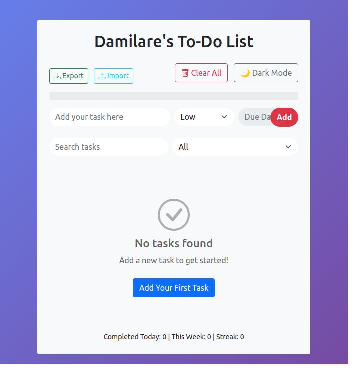 A clean and interactive to‑do list app that helps users organize tasks efficiently with a simple layout, smooth interactions, and intuitive controls.